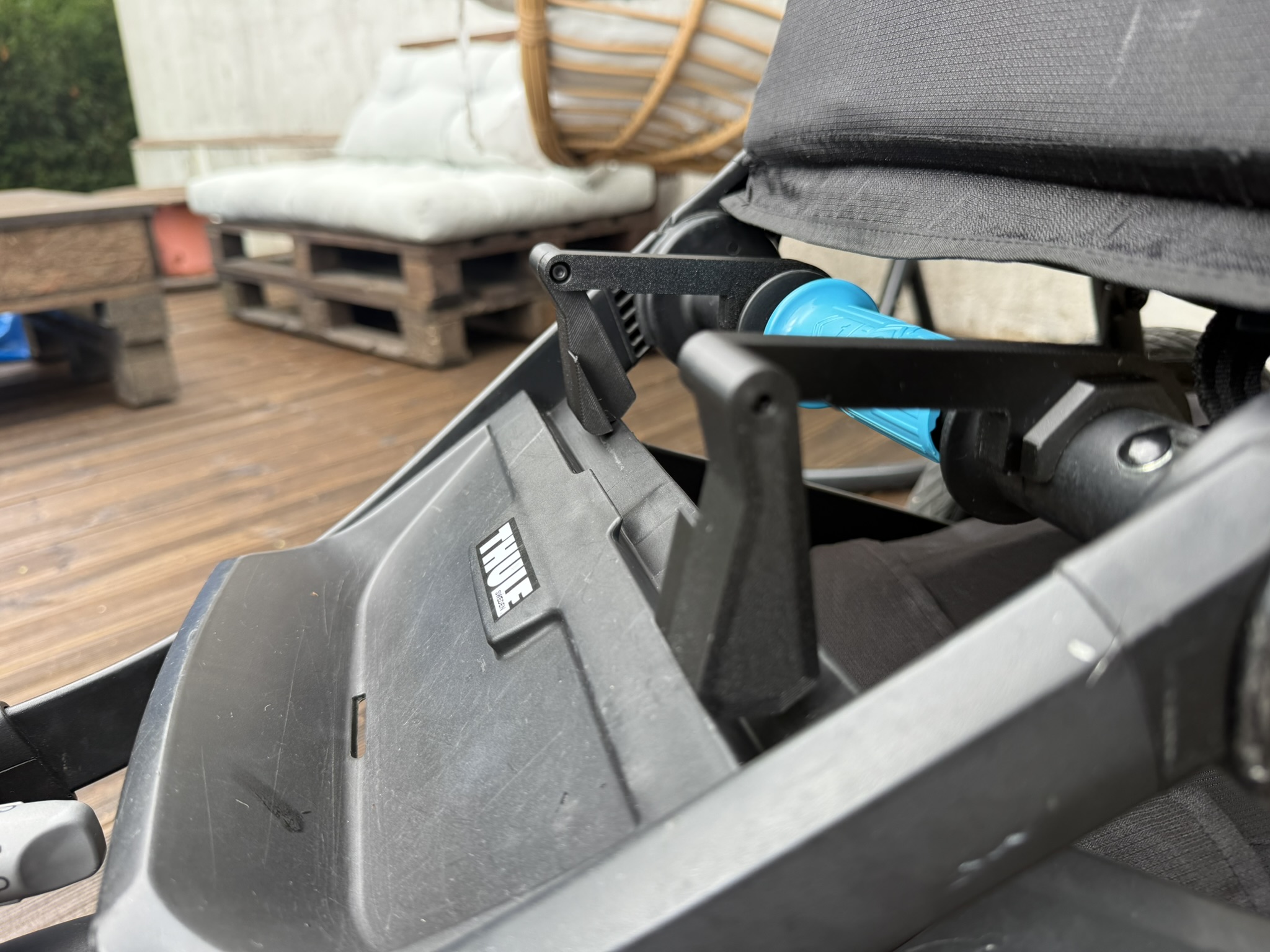 3D Printed accessory which allows the foot rest to be set to sleeping position on Thule Urban Glide 2 strollers while ritaining all standart functionalities